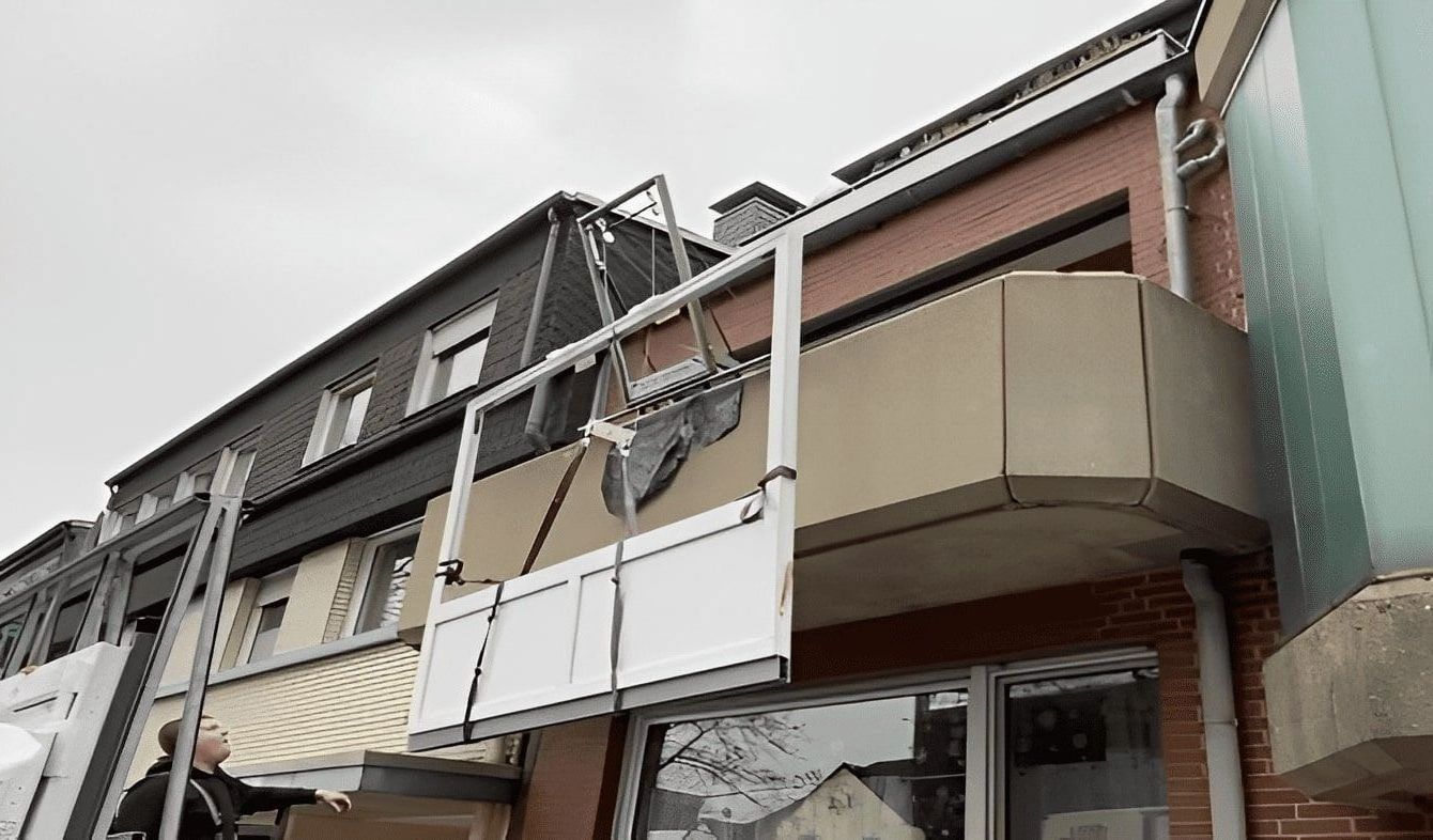In un nuovo edificio, si può semplicemente tassellare la gru mobile da cantiere sul retro o attaccarla all'impalcatura. Inoltre, due argani a cavo evitano che i componenti si attorciglino e si trascinino lungo la parete quando vengono tirati su. Così tutto rimane intatto!